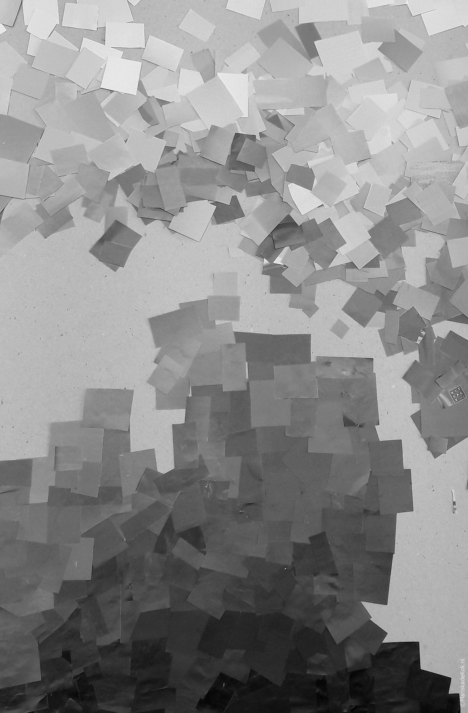 Voorlopig ben ik nog wel even bezig met plakken. Voor de zeer oplettende lezer, Ja, het is niet gescheurd, maar geknipt ……. Mijn lieftallige assistentie in deze, Heleen van den Brande, heeft zich gestort op het sorteren van kleuren uit allerlei magazines. En zij werkt iets netter dan ik.